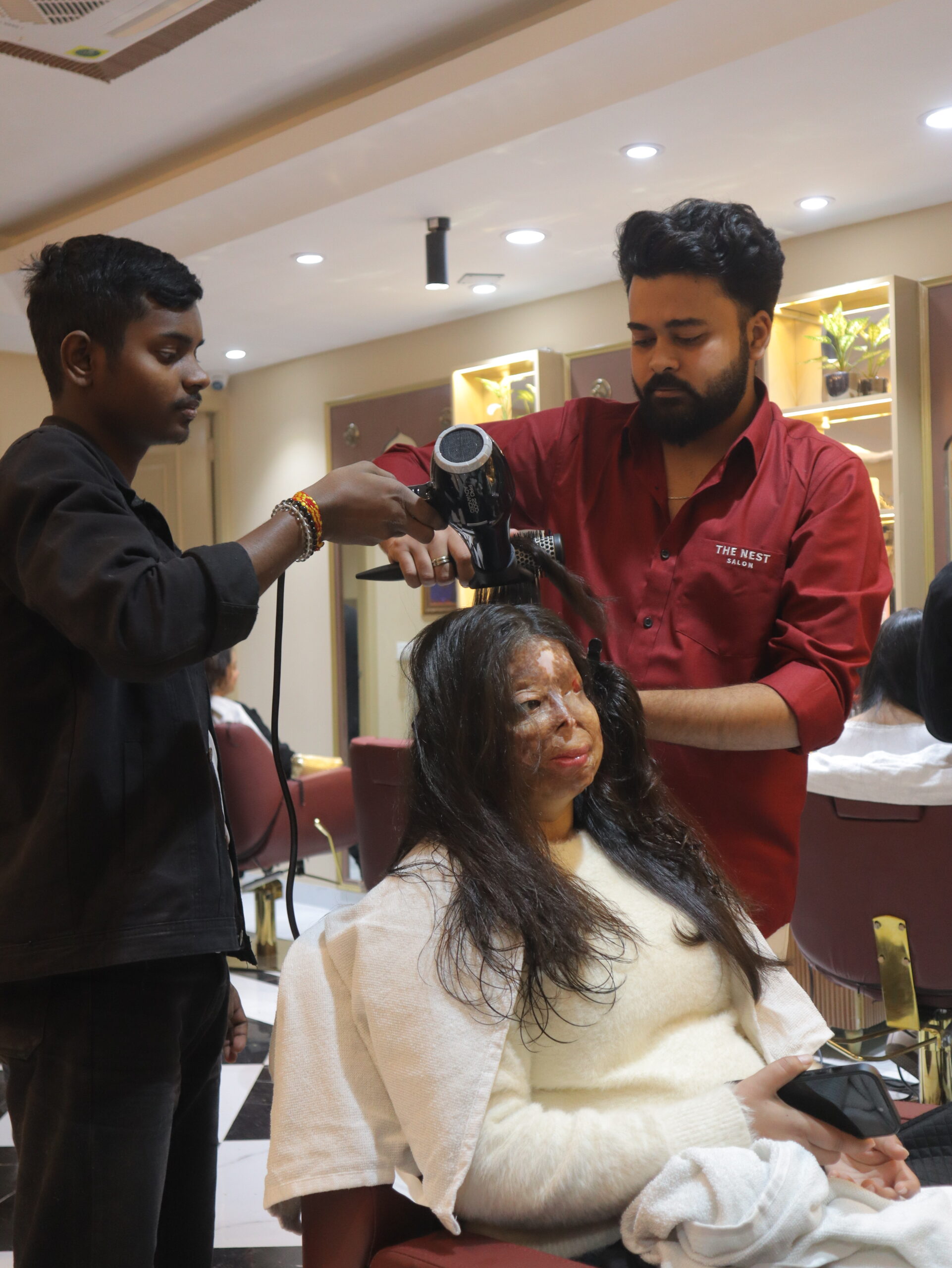 We firmly believe that no one should be defined by trauma or treated unfairly because of it. At The Nest Salon, all services are provided free of cost to acid attack survivors of CHAANV FOUNDATION, ensuring they can experience self-care, confidence, and kindness without barriers.
